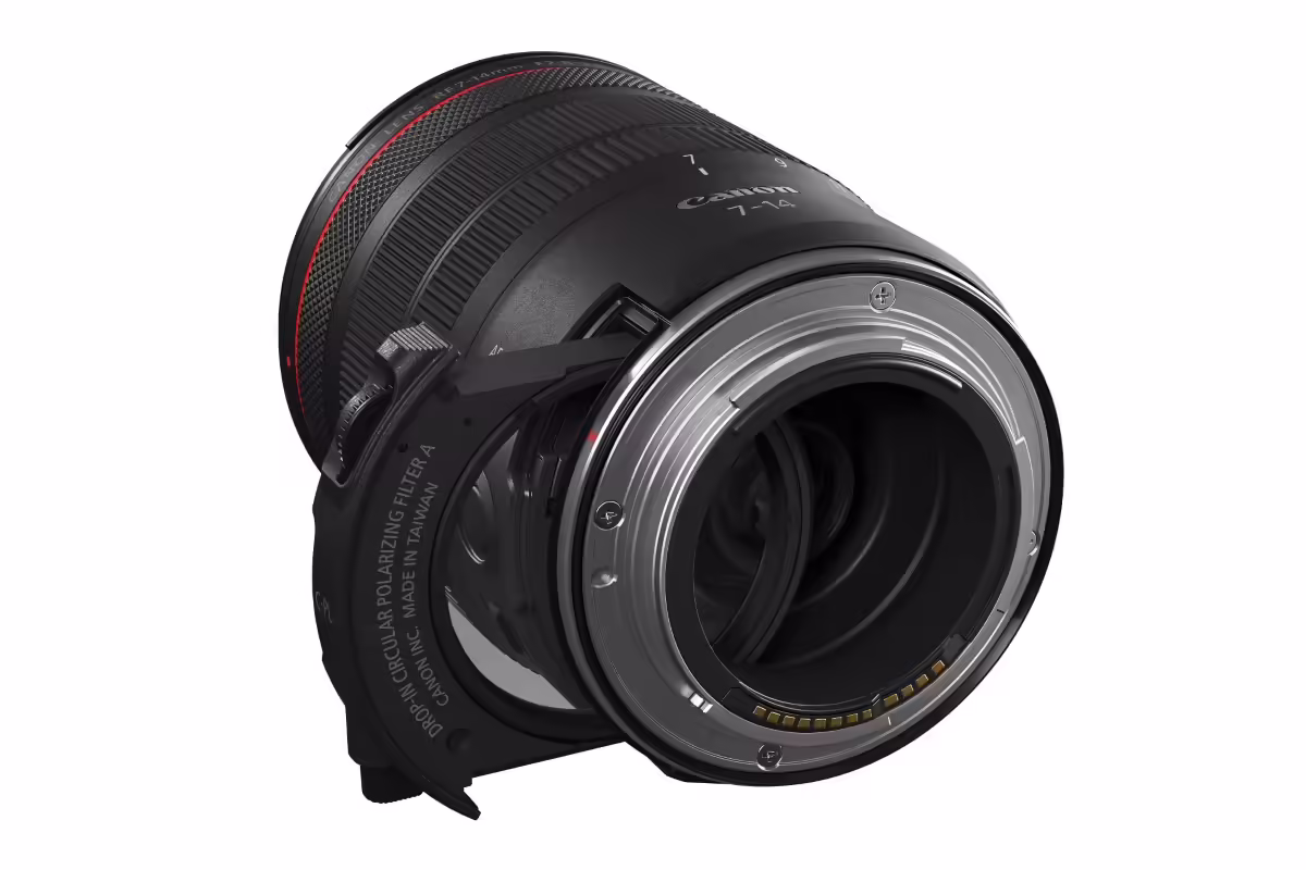RF 14mm f/1.4 L VCM 配备旋转式固定遮光罩,RF 7-14mm f/2.8-3.5 L STM 采用花瓣式可拆卸遮光罩。滤镜口径分别为 112mm 与前置凝胶滤镜槽设计。