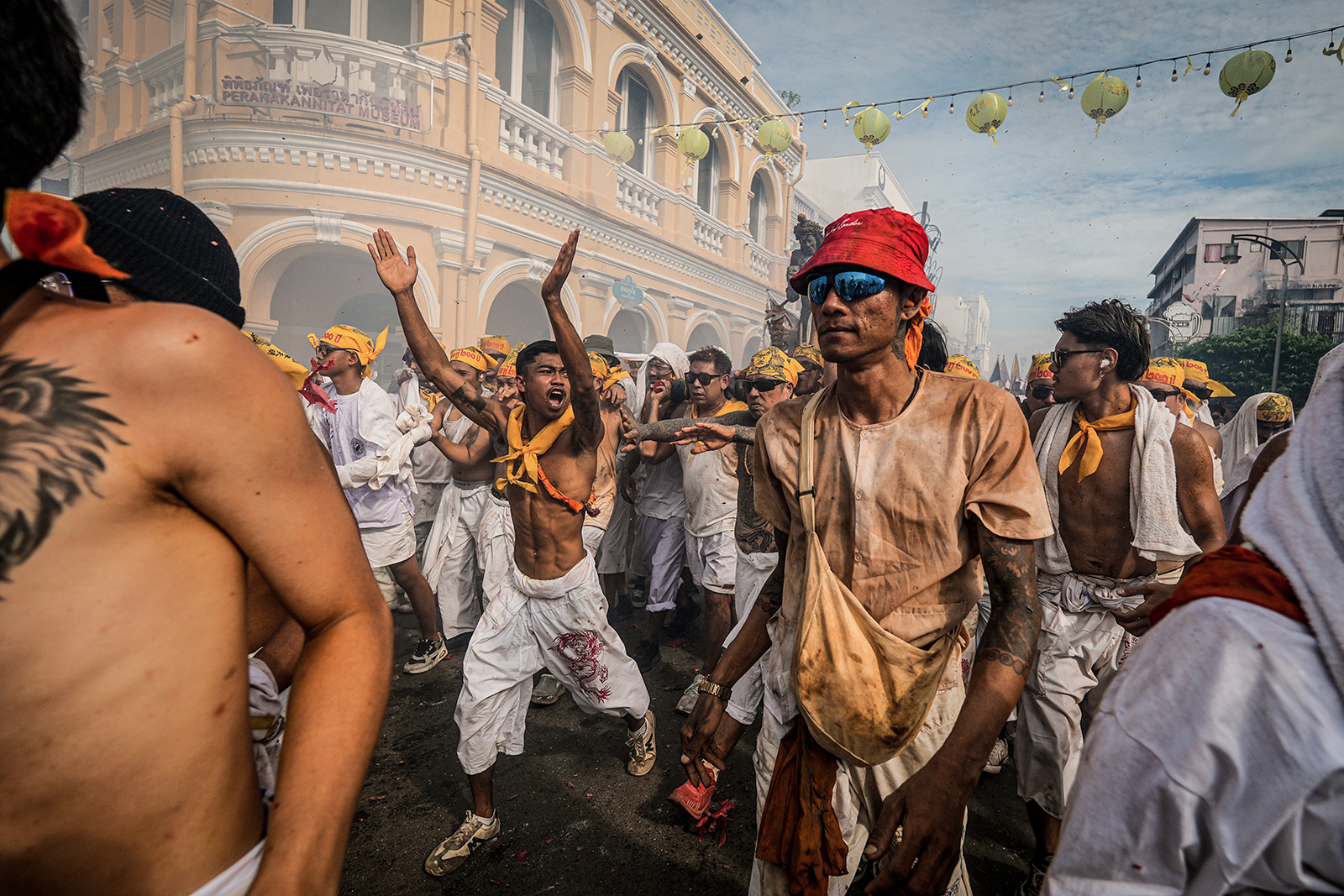 我的镜头追寻着这份传承:从铿锵锣鼓中肃穆前行的素白衣队伍与庄严神轿,到舞龙舞狮与“乩童”仪式的震撼画面;从飘扬的“斋”字旗,到街头纯粹的素食烟火。我试图捕捉的,不仅是色彩与动作,更是一个社群通过极致仪式与共同记忆,年复一年确认自身文化身份的、厚重而鲜活的生命力。镜头定格的每一帧,皆是这份文化传承的厚重印记。