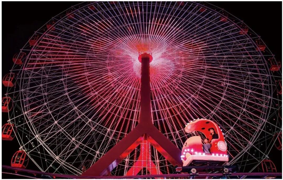 不同时段的光影运用更让作品焕发别样魅力。彭权威的《晨雾金晖碉楼美》薄雾轻笼碉楼柔化建筑轮廓,尽显侨乡晨景的静谧柔美;陈宇峰的《幸福摩天轮》定格摩天轮的红焰流光与瓢虫座舱,在夜色中传递甜软幸福;温美华的《彩色乐章》以夕阳为底色,展现渔乡鲜活韵律,让画面意境更具层次感与感染力。