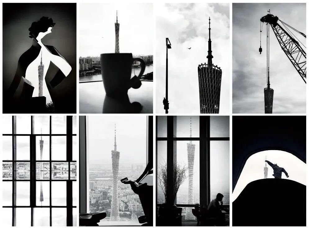 创作者们以巧思突破传统构图边界,通过多元构图手法的创新运用,让画面结构与主题表达深度契合,既赋予作品强烈的视觉新意,又精准传递出作品的核心内涵。黎锦莲的《塔・视觉》多角度呈现广州塔的城市在场,使其成为既彰显地标气势又贴近日常温度的情感坐标;陈欣洪的《新能源之城》以螺旋、阵列线条铺展光伏板,承载城市绿色转型的 时代内涵;梁思静的《时空穿越》将古俑车马与高铁、摩天楼同框,以古今物象碰撞出日常场景中的文明对话,构图巧妙且主题鲜明。